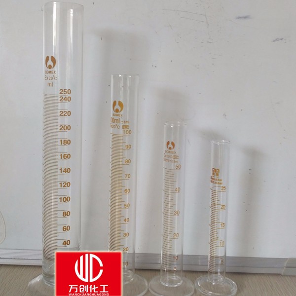 量筒量筒是用來量取液體的一種玻璃儀器。量筒越大,管徑越粗,其精確度越小,由視線的偏差所造成的讀數(shù)誤差也越大。所以,實驗中應(yīng)根據(jù)所取溶液的體積,盡量選用能一次量取的最小規(guī)格的量筒。常用規(guī)格:5ml、10ml、25ml、50ml、100ml、250ml、500ml、1000ml 注意事項:1.不能作反應(yīng)容器2.不能加熱、量取熱溶液3.不能稀釋濃酸、濃堿4.不能儲存藥劑