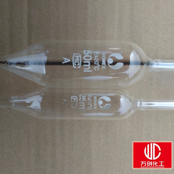 大肚移液管移液管是用來(lái)準(zhǔn)確移取一定體積的溶液的量器,只用來(lái)測(cè)量它所放出溶液的體積。它是一根中間有一膨大部分的細(xì)長(zhǎng)玻璃管。其下端為尖嘴狀,上端管頸處刻有一條標(biāo)線,是所移取的準(zhǔn)確體積的標(biāo)志。常用規(guī)格:1ml2ml5ml10ml25ml 50ml