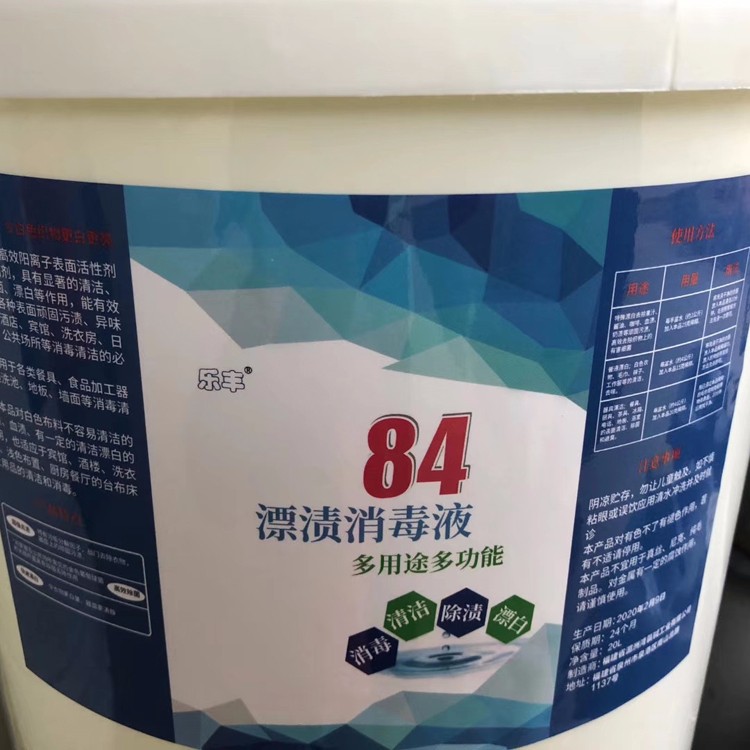 84消毒液是一種以次氯酸鈉為主要成分的含氯消毒劑,主要用于各種物體表面和環(huán)境等的消毒。次氯酸鈉在水溶液中產(chǎn)生的次氯酸可分解出新生態(tài)氧,具有極強的氧化性,可以使病毒的核酸物質(zhì)發(fā)生氧化作用,從而殺滅病毒。 無色或淡黃色液體,且具有刺激性氣味,有效氯含量5%~7%。被廣泛用于賓館、旅游、醫(yī)院、食品加工行業(yè)、家庭等的衛(wèi)生消毒。